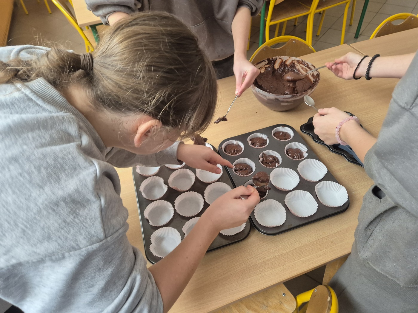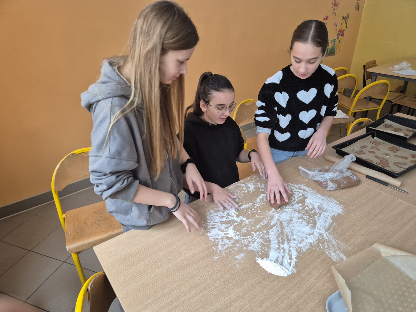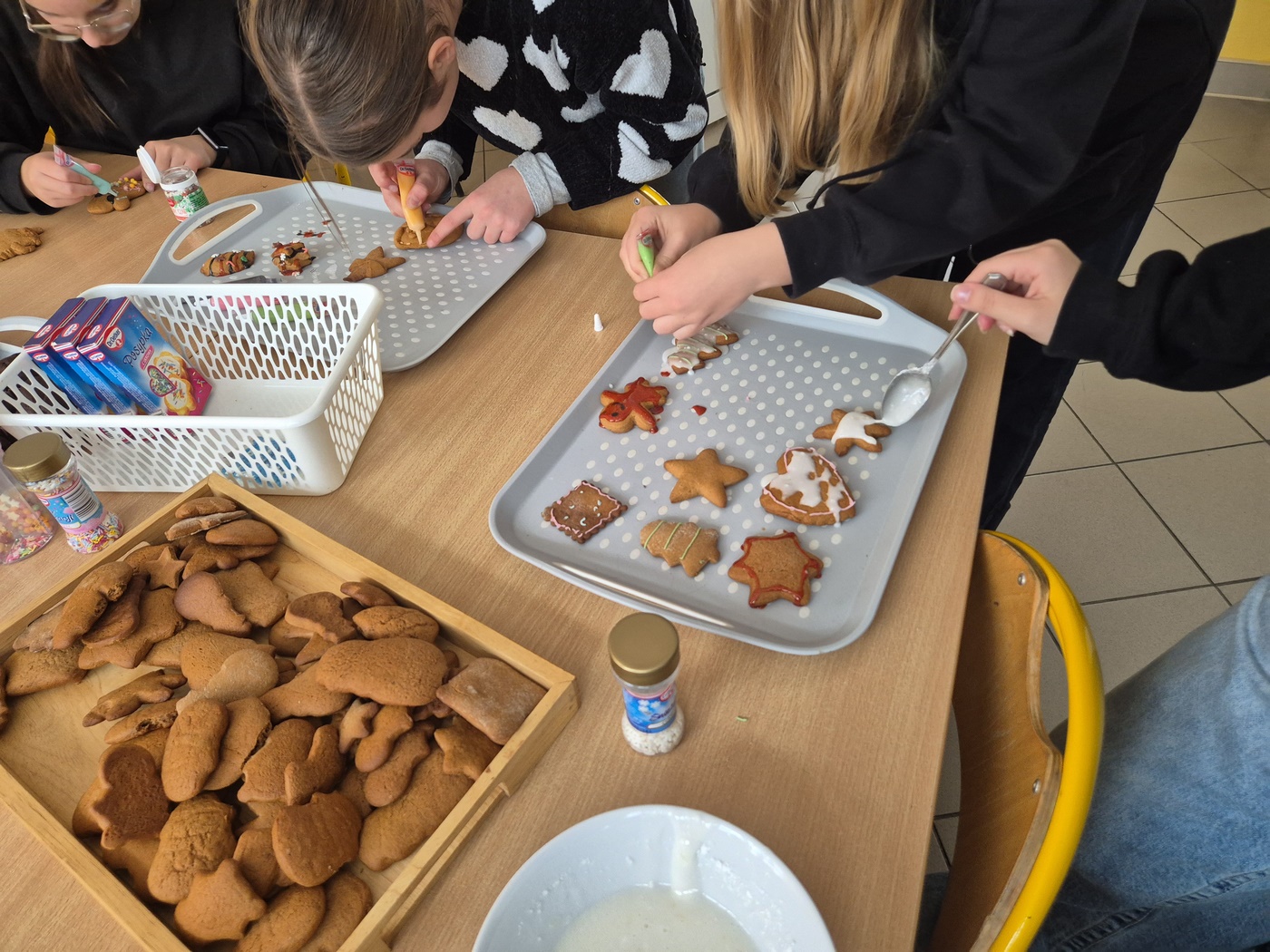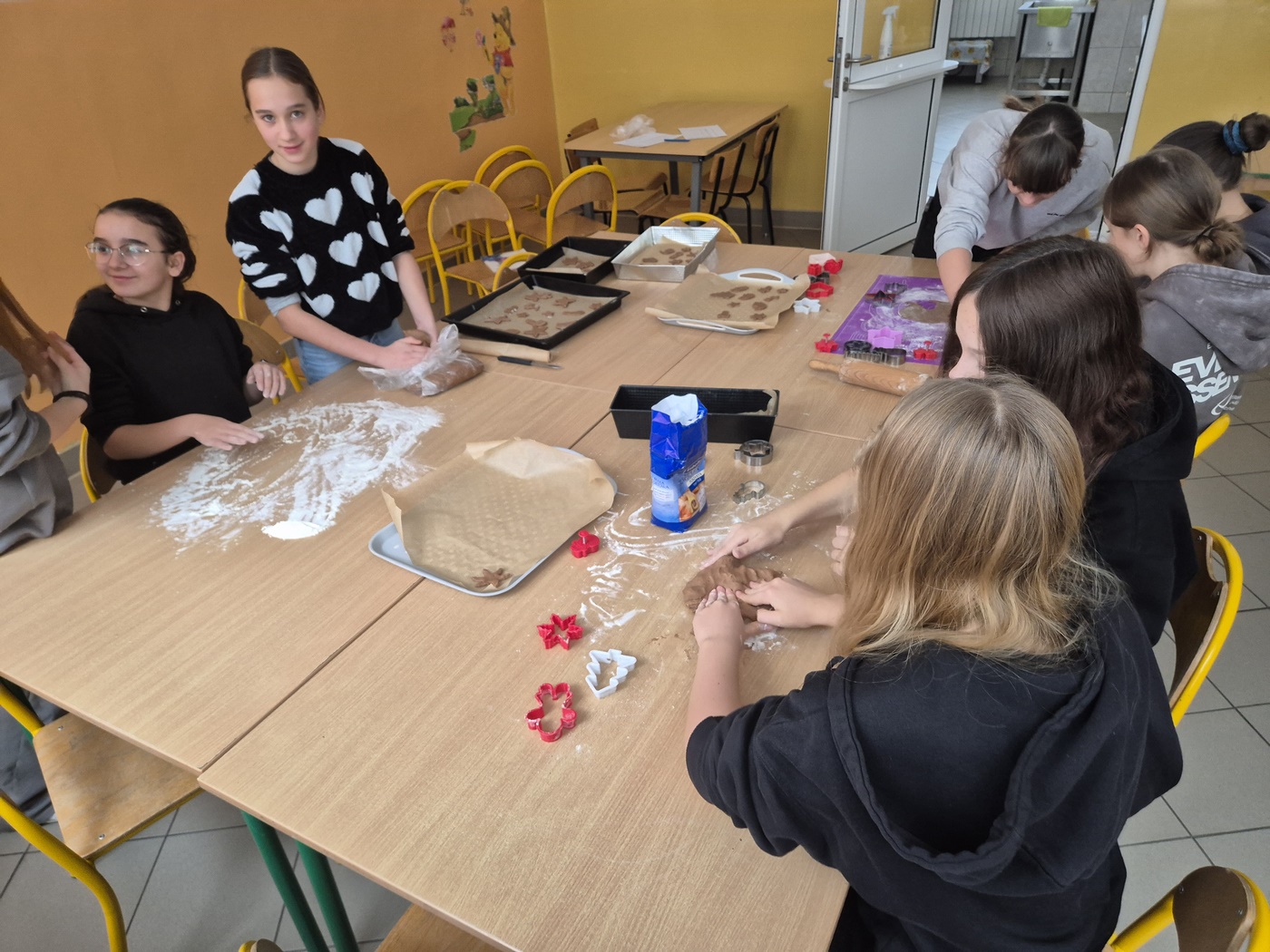 Już w listopadzie uczestnicy zajęć połączyli naukę z przyjemnością, przygotowując aromatyczne pierniczki oraz czekoladowe muffinki. Była to doskonała okazja do rozmów o świadomym wyborze produktów i niemarnowaniu żywności. W okresie przedświątecznym uczniowie wykazali się także ogromną kreatywnością, tworząc ekologiczne ozdoby choinkowe z surowców wtórnych. Własnoręcznie wykonane dekoracje ozdobiły szkolną choinkę, wprowadzając wyjątkową, świąteczną atmosferę i pokazując, że piękne rzeczy można stworzyć z materiałów, które często uznajemy za niepotrzebne.
