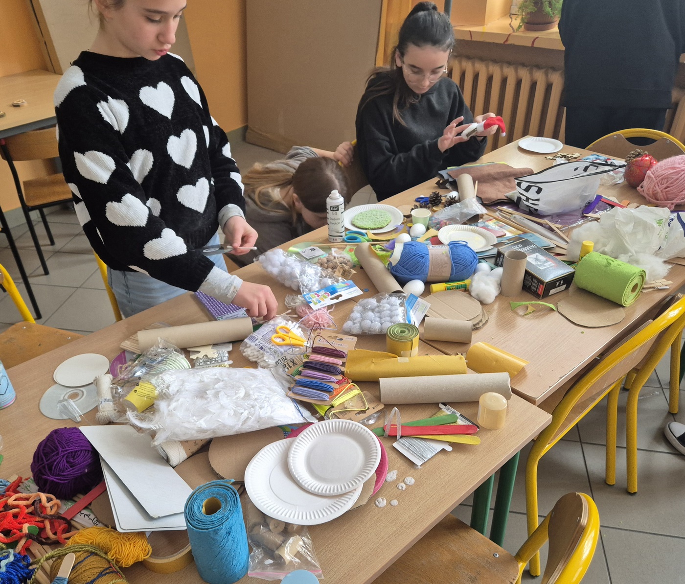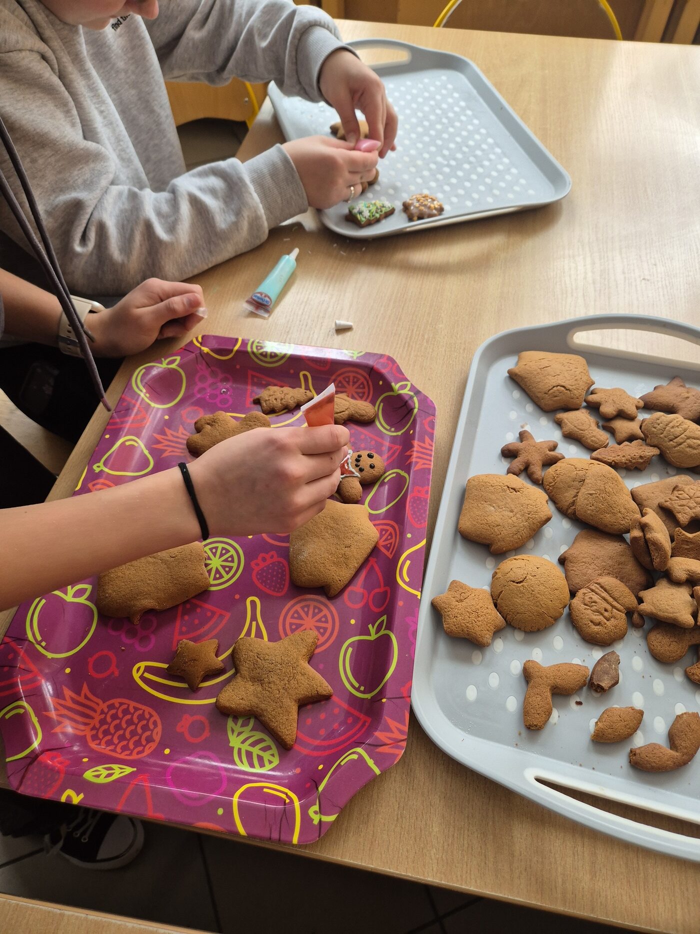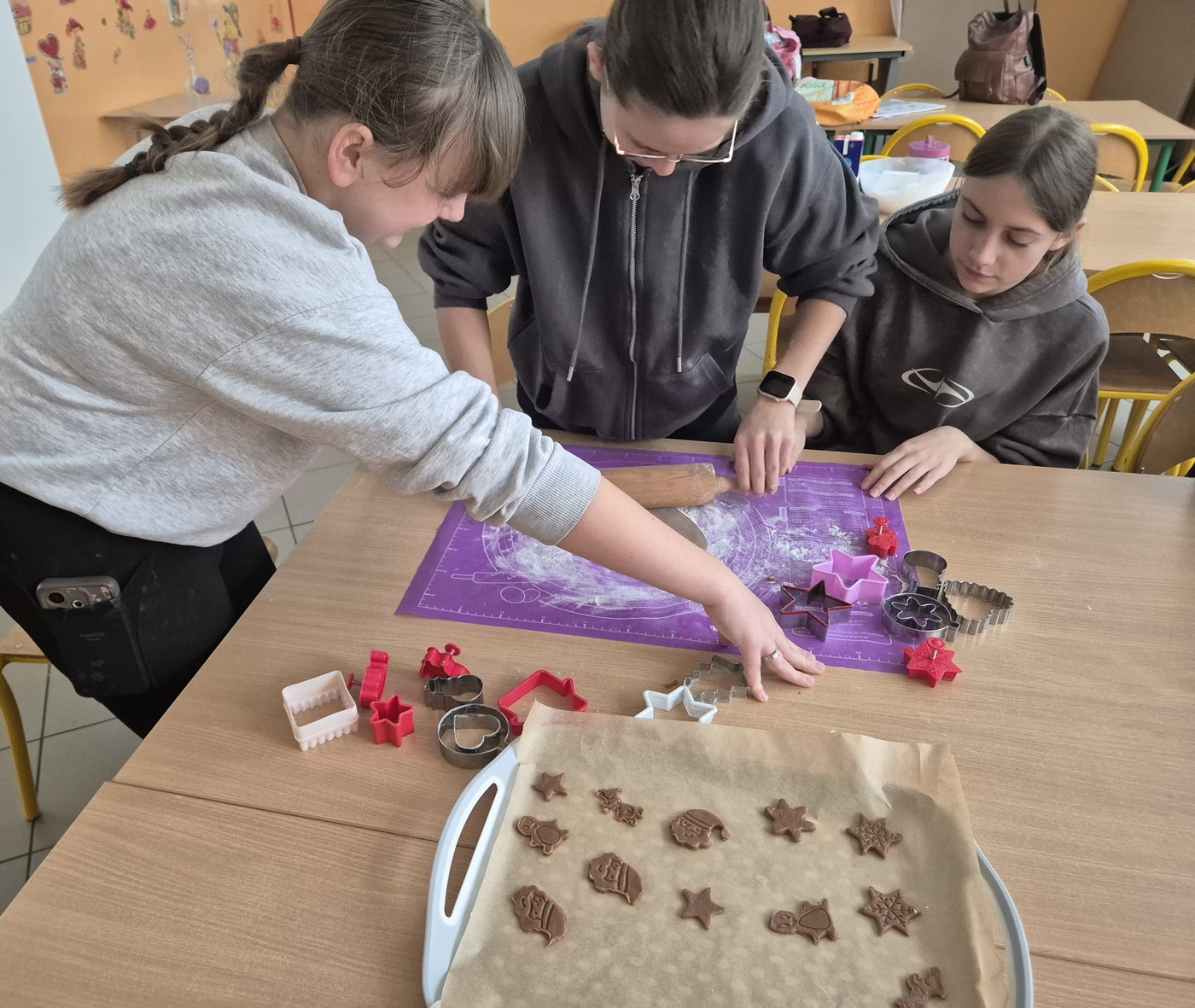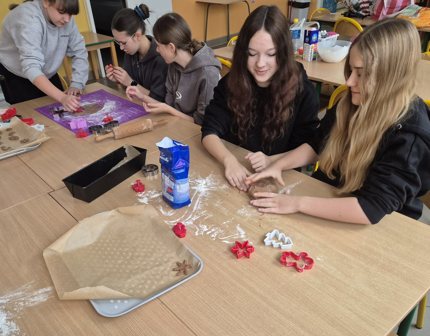Już w listopadzie uczestnicy zajęć połączyli naukę z przyjemnością, przygotowując aromatyczne pierniczki oraz czekoladowe muffinki. Była to doskonała okazja do rozmów o świadomym wyborze produktów i niemarnowaniu żywności. W okresie przedświątecznym uczniowie wykazali się także ogromną kreatywnością, tworząc ekologiczne ozdoby choinkowe z surowców wtórnych. Własnoręcznie wykonane dekoracje ozdobiły szkolną choinkę, wprowadzając wyjątkową, świąteczną atmosferę i pokazując, że piękne rzeczy można stworzyć z materiałów, które często uznajemy za niepotrzebne.