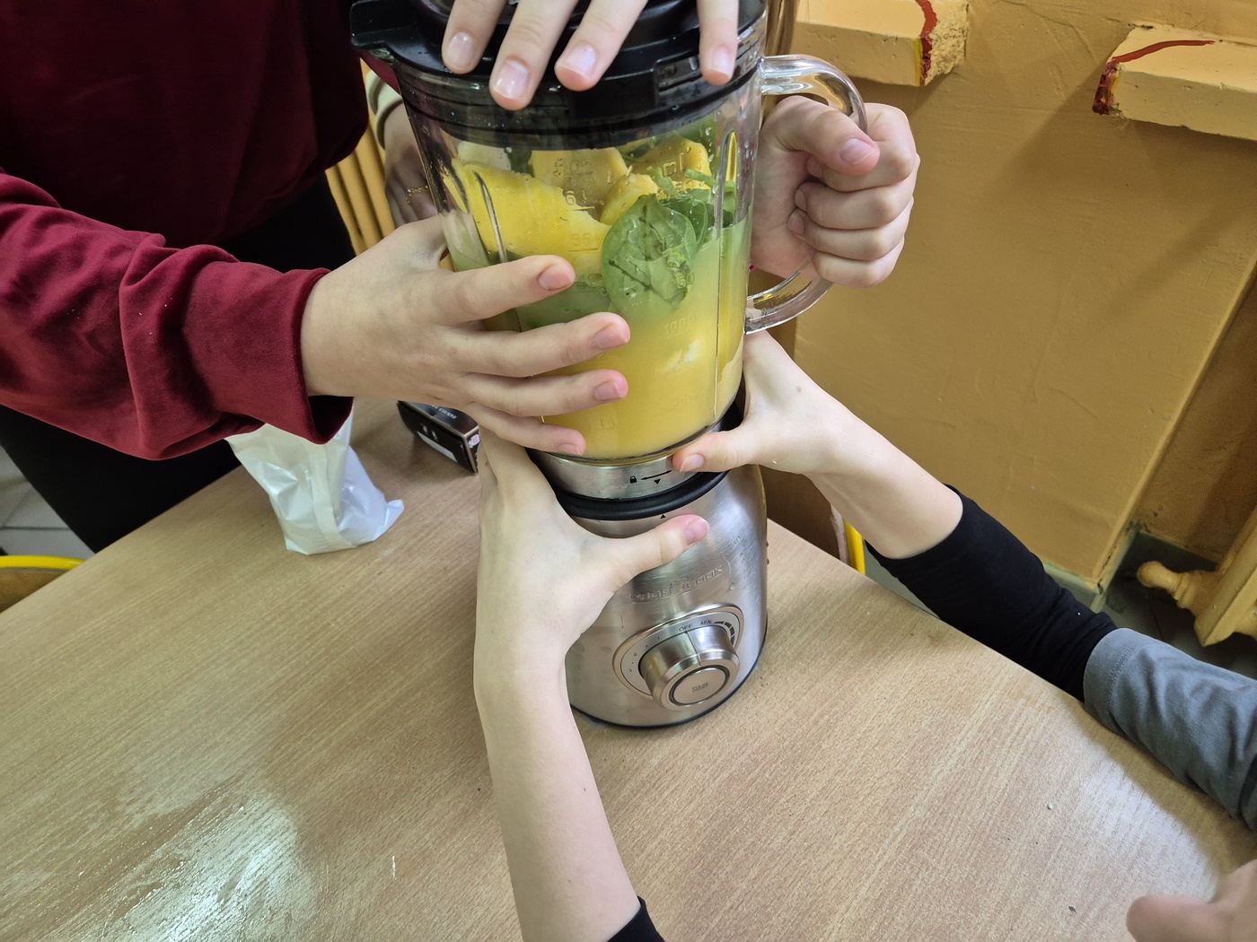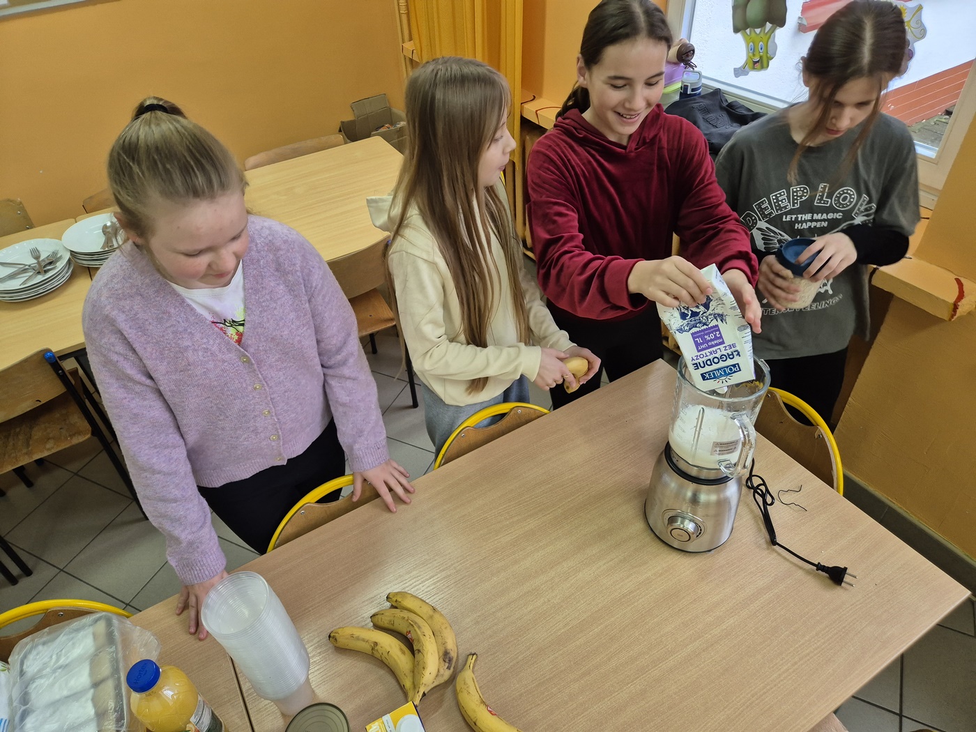 Ostatnie spotkanie upłynęło pod znakiem zdrowego stylu życia. Uczniowie samodzielnie przygotowywali zdrowe przekąski-między innymi marchewkowe muffiny oraz kolorowe koktajle. Była to świetna okazja do rozmów o tym, jak ważne jest zdrowe odżywianie oraz wybieranie naturalnych produktów.
